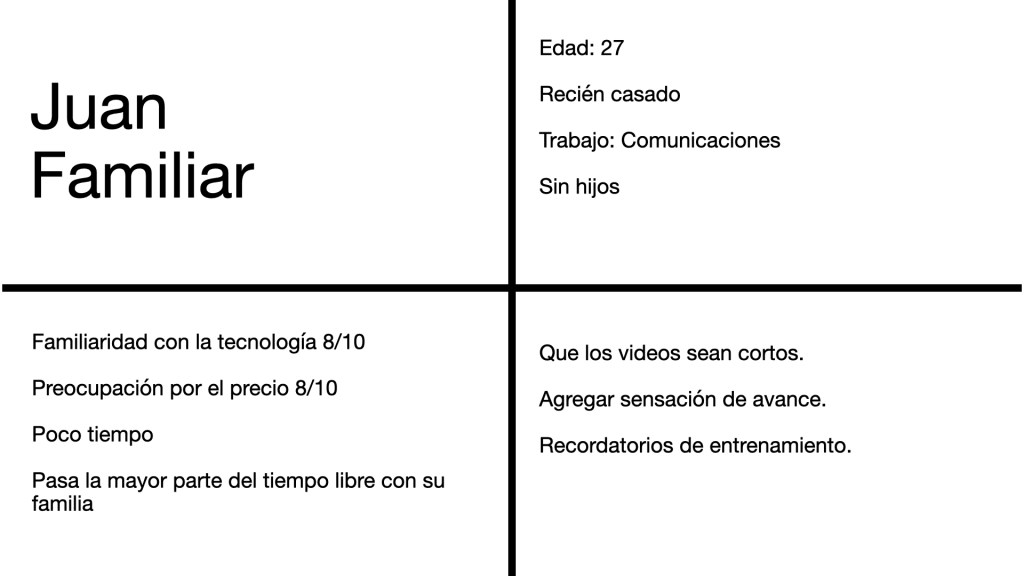 Pero el target persona debería ir más allá, deberás pensar en aspectos específicos de ese usuario: Edad, si tiene hijos y cuantos, pasatiemos, incluso darle un nombre, además de cosas que definan más acerca de su carácter que hacen que sea tu cliente ideal, como qué tan a gusto se siente con la tecnología o qué tan enfocado está en el precio. No tiene que ser algo muy elaborado, a mi me funciona dividirlo así: