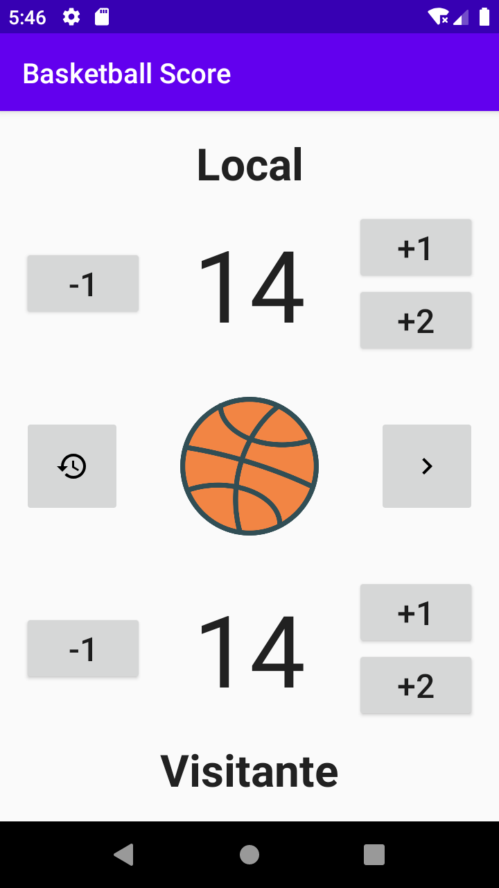 Basketball Score es una aplicación para llevar un registro de la puntuación en partidos de basketball. La app terminada luce así: